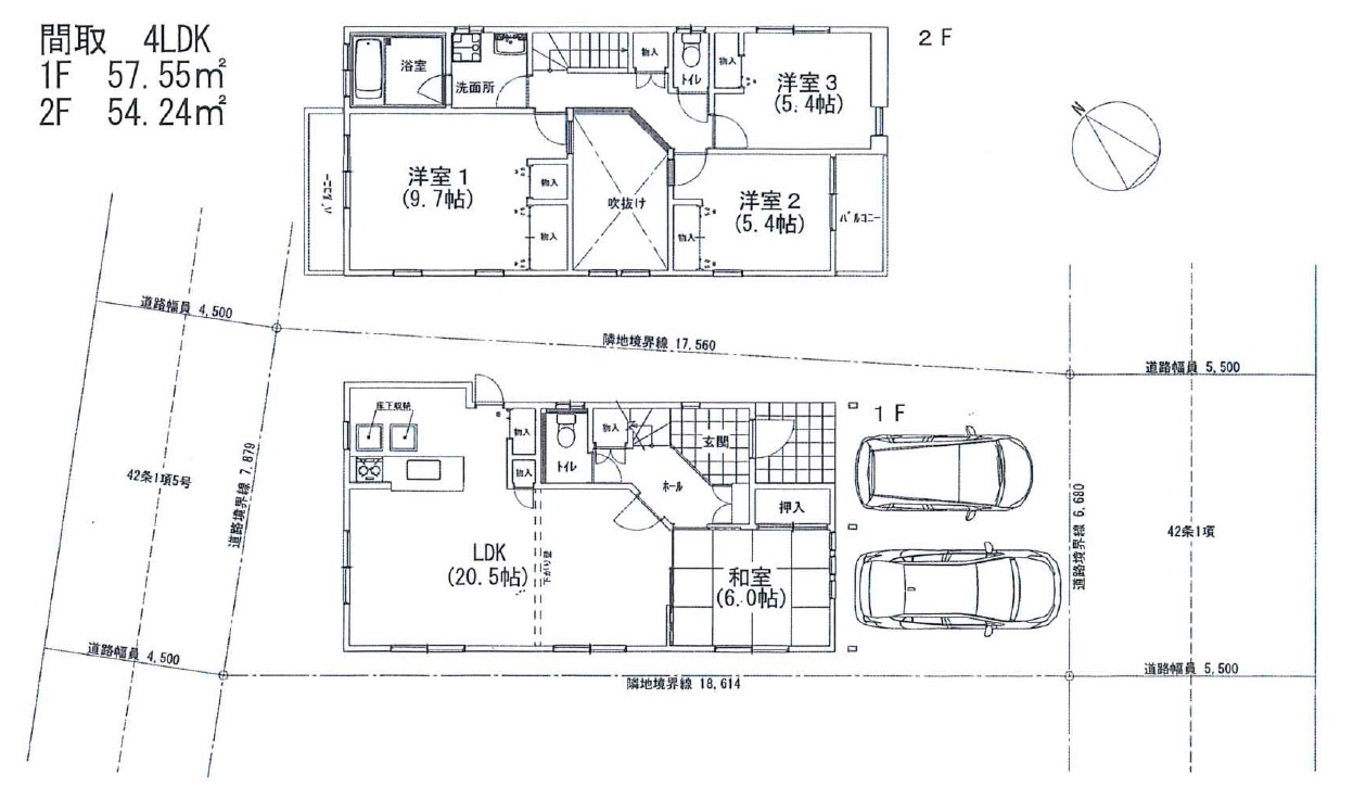 | 接道 | 南東側 幅員 約5.5mの公道、北西側 幅員 約4.5mの私道 |