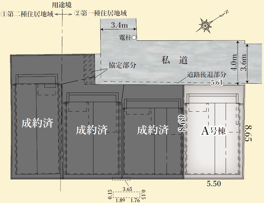 | 接道 | 北西側 幅員 約4.0mの私道 |